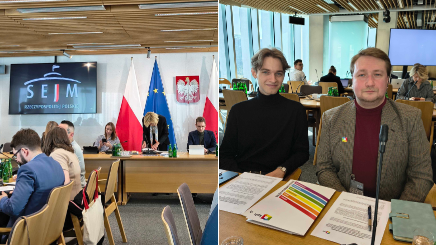 Dzisiaj, 10 marca, odbyło się posiedzenie Nadzwyczajnej Komisji ds. projektu ustawy o statusie osoby najbliższej w związku i umowy o wspólnym pożyciu. Z ramienia KPH w posiedzeniu udział wzięli Mateusz Trzaska, koordynator ds. rzecznictwa, oraz Przemek Walas, kierownik rzecznictwa